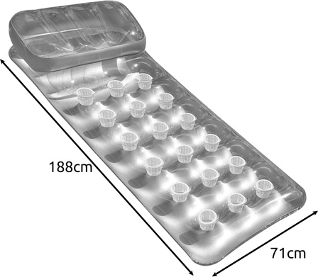 Die Liege ist für entspanntes Ausruhen auf dem Wasser und an Land konzipiert. Dank des integrierten Kissens genießen Sie maximalen Komfort – ob beim Lesen, Sonnenbaden oder entspannten Dahintreiben. Die Abmessungen sind auch für größere Personen geeignet, sodass Sie sich vollständig ausstrecken und entspannen können.