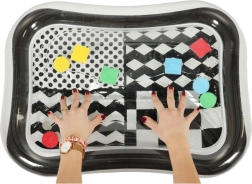 Die Unterlage bietet eine reiche sensorische Stimulation mit kontrastreichen Farben und sich bewegenden bunten Formen im Inneren. Hervorragend geeignet zur Förderung der visuellen und taktilen Entwicklung.