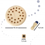 • Lieferumfang: runde Spielplatte mit Löchern, 24 Holzstifte in 6 Farben, Holz-Farbwürfel