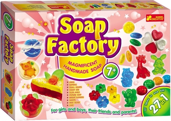 Entdecken Sie das Große Seifenherstellungsset mit 27 Formen. Komplett mit Seifenbasis, Farben, Düften und weiterem Zubehör. Ideal für kreative Kinder ab 7 Jahren.