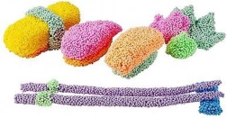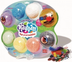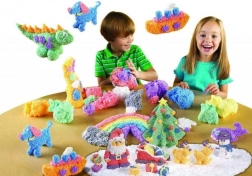 PlayFoam ist eine leichte Modelliermasse aus kleinen Schaumkügelchen, die mit einem speziellen Bindemittel verbunden sind. Dadurch zerfällt sie nicht, haftet nicht an Möbeln oder Teppichen und behält auch bei größeren Kreationen ihre Form. Einzelne Farben lassen sich bei geschicktem Umgang wieder trennen und die Masse trocknet nicht aus – der Spaß nimmt kein Ende.