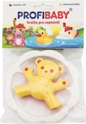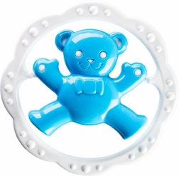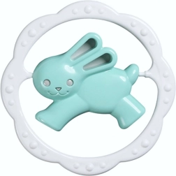 Entdecken Sie die niedliche Rassel mit Beißring in Kreisform, die durch ihr verspieltes Design und die strukturierte Oberfläche für eine angenehme Stimulation des Zahnfleischs überzeugt. Dank des bequemen Griffs liegt das Spielzeug gut in der Hand und animiert zum selbstständigen Entdecken.