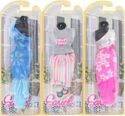 Ergänzen Sie die Garderobe Ihrer Puppe mit eleganten Kleidchen aus der Kollektion SARIEL. Jedes Stück kommt in einer anderen Farbvariante und einem anderen Muster, sodass jedes Spiel einzigartig sein kann. Dank der kompakten Maße von etwa 18 × 5 cm eignet es sich für Puppen entsprechender Größe.