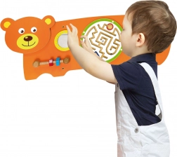 Entdecken Sie ein unterhaltsames und lehrreiches Spielzeug für die Kleinsten – die große hölzerne Sinnestafel in Bärenform der Marke Viga. Sie kombiniert Kugel-Labyrinth, Zahnräder, sicheres Spiegelchen und Schrauben zum Fingertraining, wodurch Kinder ihre Feinmotorik, Hand-Auge-Koordination und logisches Denken entwickeln. Hochwertiges Holz mit FSC-Zertifizierung und Farben gemäß den Normen EN71 und ASTM gewährleisten sicheres Spielen zu Hause und im Kindergarten.