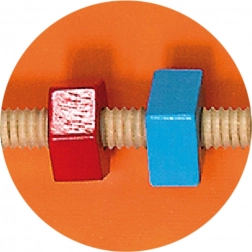 Das Kugel-Labyrinth und die Schrauben mit Gewinde trainieren Fingerpräzision, Greifen und Hand-Auge-Koordination. Kinder bewegen die Kugel und üben Geduld und Konzentration.