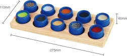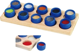 Die Aufgabe des Kindes besteht darin, anhand des Berührungsgefühls die passende Textur zu finden und den Zylinder zuzuordnen – ohne den Sehsinn zu nutzen. So werden taktile, vestibuläre und propriozeptive Prozesse trainiert, die im Vorschulalter wesentlich sind. Die robuste Ausführung aus Holz gewährleistet Langlebigkeit und eine lange Nutzungsdauer.