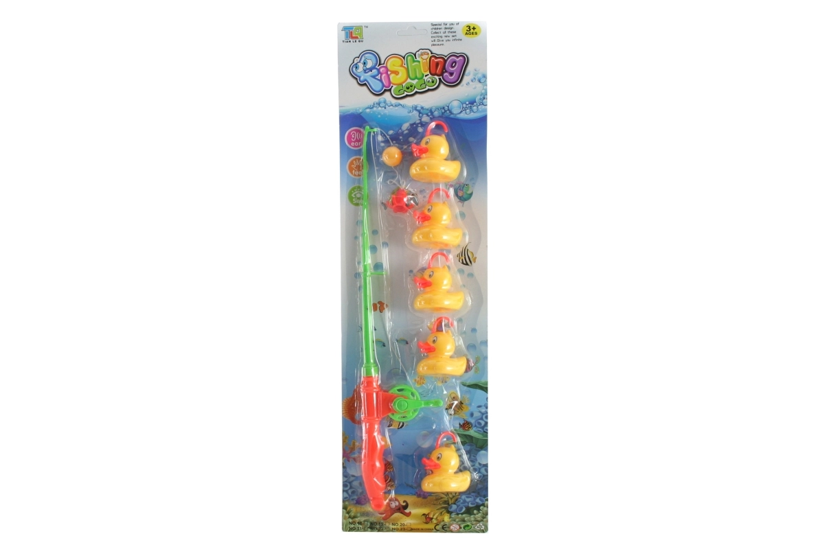 • Komplettes Set – Plastikangel mit Kurbel und 5 Entchen mit Häkchen.