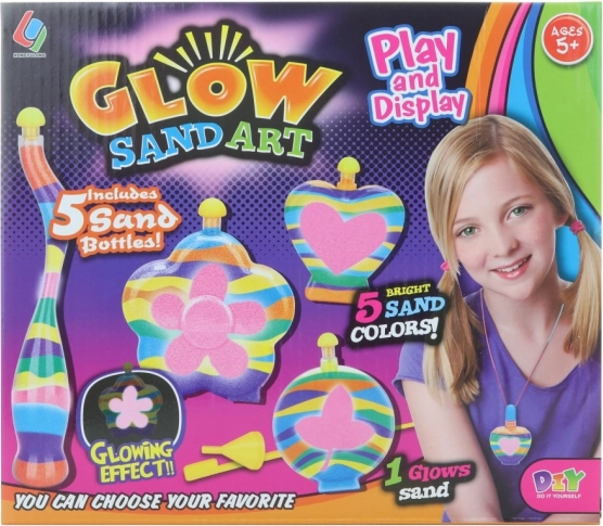Dieses originelle Set bietet alles, was Kinder zur Gestaltung zauberhafter Dekorationen benötigen. Füllen Sie die Fläschchen mit leuchtendem Sand in verschiedenen Farben, schichten Sie Effekte und kreieren Sie einzigartige Muster. Dank des einfachen Zubehörs ist die Arbeit sauber, unterhaltsam und sicher.