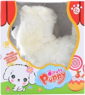 Weißer gehender Hund ist ein großartiger Begleiter für jedes Kind ab 3 Jahren. Dieser niedliche Hund läuft und bellt, was stundenlangen Spaß und Freude bringt.
