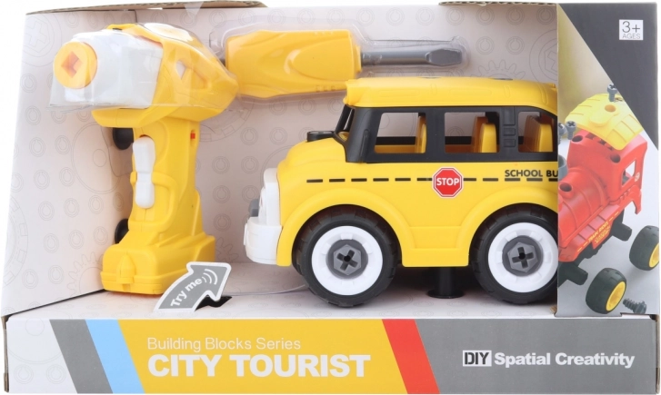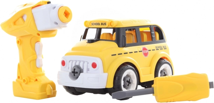Entdecken Sie ein cleveres Spielzeug, das Bausatz und Fernsteuerung verbindet. Kinder verschrauben den Bus zunächst mit dem beiliegenden Schraubendreher oder der Bohrmaschine. Aus der Bohrmaschine lässt sich der Motor entnehmen, in den Bus einsetzen und schon ist er fahrbereit – die Steuerung nach vorne und hinten gelingt ganz leicht.