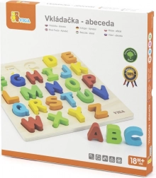 Entdecken Sie den Zauber des Lernens mit diesem wunderschönen Holzpuzzle, das insgesamt 26 Teile enthält, welche alle Buchstaben des tschechischen Alphabets darstellen.