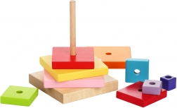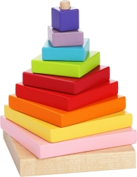 Die bunte Pyramide hilft, die sensomotorischen Fähigkeiten, das logische Denken und die Kreativität der Kinder zu entwickeln.