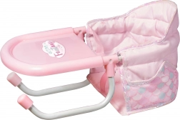 Stabile Befestigung unter der Tischplatte (bis ca. 7 cm Stärke) und praktisches Tablett für müheloses Füttern der Puppe. Kompakte Maße 38 × 28 × 14 cm sparen Platz zu Hause und auf Reisen.