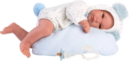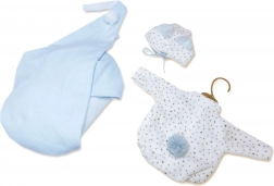 Gönnen Sie Ihrer NEW BORN Puppe Stil und Komfort. Dieses liebevoll abgestimmte Set umfasst ein kuschelweiches Outfit in Blau-Weiß mit Sternchenmotiv sowie eine praktische hängende Wiegen-Hängematte, die ein gemütliches Plätzchen für die Puppe schafft. Ideal fürs Pflegespiel und zum Zubettbringen.
