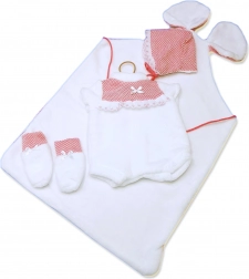 Llorens Outfit für die Puppe New Born 40–42 cm, 3‑teiliges Set mit Unterlage mit Öhrchen