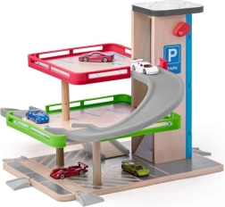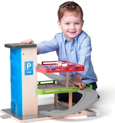 Diese bunte Kindergarage ist darauf ausgelegt, Spaß zu bieten und die Vorstellungskraft der Kinder zu fördern. Sie ist mit einem Aufzug und mehreren Ebenen ausgestattet, was vielfältige Spielszenarien ermöglicht. Die Garage ist eine Kombination aus Holz und Kunststoff, was sie langlebig und zugleich attraktiv macht.