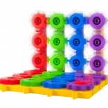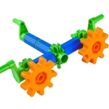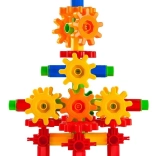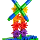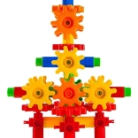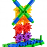 Das Bauset enthält spezielle Zahnräder, die Drehungen und Bewegungen der Konstruktionen ermöglichen und die mechanischen Fähigkeiten fördern.