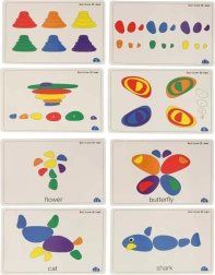 Steinchen in verschiedenen Größen ermöglichen das Legen von Tieren, Gegenständen und fantasievollen Bildern. Die Karten dienen als Inspiration und Schablonen für eigenständiges Gestalten.