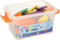 Dieses edukative Set ist ideal für Vorschulkinder und Grundschulkinder. Glatte Kunststoff-Steinchen in kräftigen Farben laden zu freiem Spiel und geführten Aktivitäten ein: Kinder können zählen, Größen vergleichen, nach Farben sortieren und Bilder sowie Muster nach Karten oder eigener Fantasie erstellen. Eine praktische Box erleichtert das Verstauen aller Teile an einem Ort.