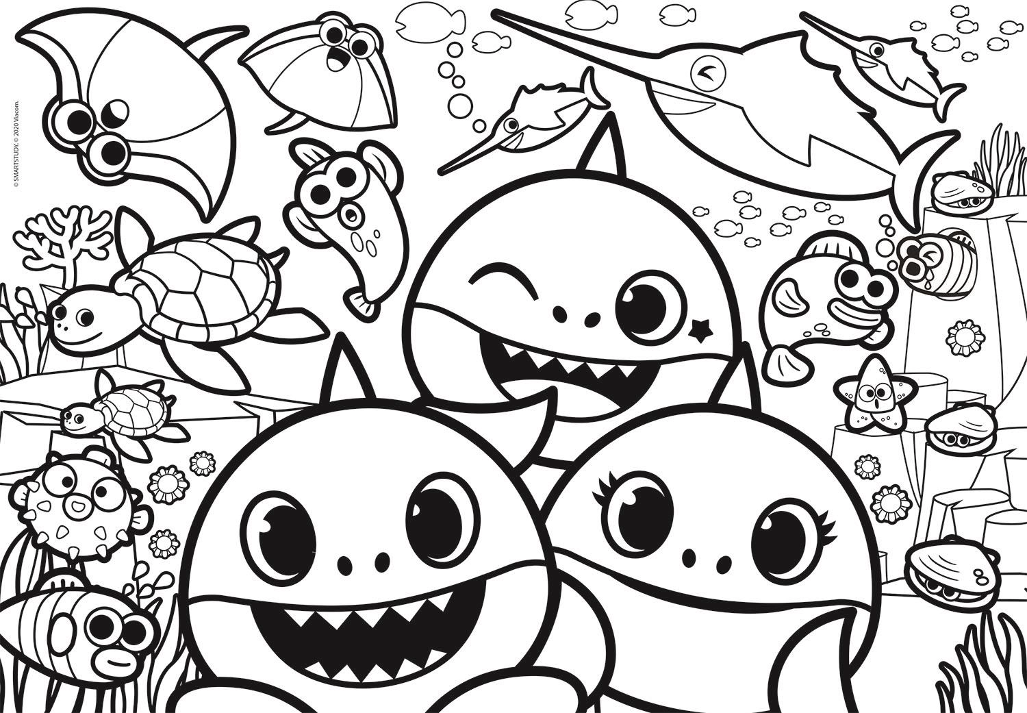 Beidseitig: farbiges BABY SHARK Motiv / schwarz-weißes Ausmalbild