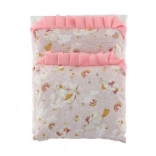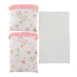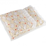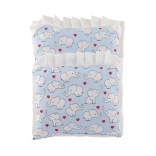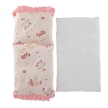 Kissen 23 × 28 cm, Unterlage 50 × 30 cm, Bettdecke 35 × 28 cm – passen hervorragend in Puppenwagen und Puppenbettchen.