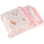 Das praktische Puppenset enthält alles, was man für einen bequemen Schlaf braucht: eine flauschige Bettdecke, ein weiches Kissen und eine Unterlage. Dank der sanften Materialien und der verspielten Motive passt es in jedes Kinderzimmer und fördert Vorstellungsvermögen und Rollenspiel.