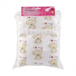 Jedes Set wird in einem Mix aus Motiven und Farben (Tiere, Blumen, Herzchen u. a.) je nach Lagerverfügbarkeit geliefert. Die Maße sind ideal für gängige Puppen und Puppenwagen, leicht zu transportieren und zu pflegen.