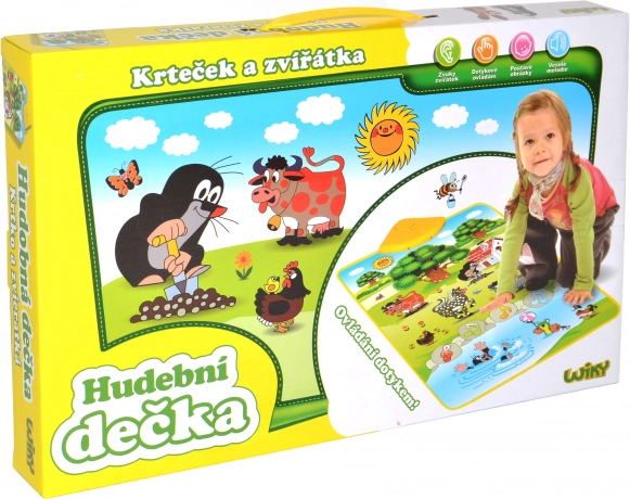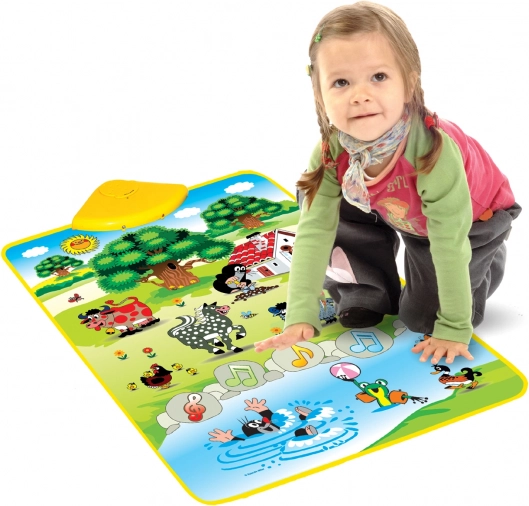 Kleins Maulwurfs Musikdecke ist ein ideales Hilfsmittel zur Entwicklung der Hörfähigkeiten von Kindern. Mit Kleinem Maulwurf im Garten lernen sie, Geräusche wie Kuh, Pferd, Frosch und andere zu erkennen. Alles ist auf einer weichen Decke platziert, die leicht auf Berührungen reagiert: