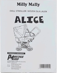 Der stilvolle Puppenwagen Alice Prestige der Marke Milly Mally überzeugt durch realistische Ausführung und praktische Funktionen. Er verfügt über eine tiefe, herausnehmbare Wanne mit Kissen und Decke, ein klappbares und abnehmbares Verdeck, einen leichten Metallrahmen und einen unteren Korb für Zubehör. Dank des waschbaren Bezugs ist die Pflege leicht, und eine Sicherung gegen unbeabsichtigtes Zusammenklappen sorgt für sicheres Spielen.