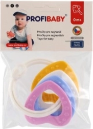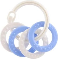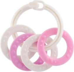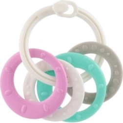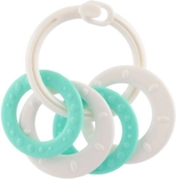 Geeignet für Kinder ab 3 Monaten, enthält dieses Beißring-Set bunte Plastikringe, die nicht nur leicht sind, sondern auch die Entwicklung der Feinmotorik unterstützen. Dank unterschiedlicher Strukturen und Formen bietet dieses Spielzeug mehr sensorische Anreize, die für die Zahnungsphase des Kindes geeignet sind.