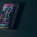 Karty Bicycle Cyberpunk Cyber City bringt Ihnen eine futuristische Welt voller fortschrittlicher Technologien. Leuchtende illustrierte Figuren verbinden traditionelle Karten mit der Inspiration einer Sci-Fi-Zukunft.