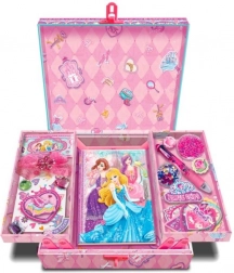 Entdecken Sie ein zauberhaftes Geschenkset in einer dekorativen Box mit dem Motiv Princess. Zwei seitliche Fächer lassen sich leicht ausklappen, und darunter verbirgt sich ein Tagebuch für geheime Wünsche und Erlebnisse. Perfekt zum Aufbewahren kleiner Dinge und zum täglichen Schreiben.