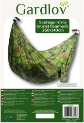 Unsere touristische Hängematte Santiago Army ist der ideale Begleiter für Outdoor-Abenteuer. Sie bietet hervorragenden Komfort und Schutz vor Insekten dank des integrierten Moskitonetzes. Die einfache Montage ermöglicht es Ihnen, das Netz schnell und problemlos überall aufzuhängen, wo Sie entspannen möchten.