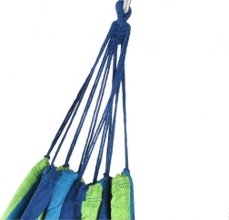Die komfortable Hängematte ohne Spreizstäbe bietet eine stabile und sichere Liegefläche für ein bis zwei Personen. Die Baumwoll-Polyester-Mischung ist hautfreundlich, zugleich robust und pflegeleicht – das Material ist maschinenwaschbar. Dank der atmungsaktiven Struktur ist die Entspannung auch an heißen Tagen angenehm.