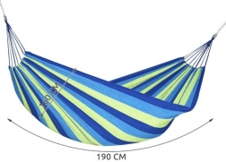 Genießen Sie entspannte Momente im Freien mit dieser doppelsitzigen Hängematte aus angenehmer Baumwolle mit Polyesteranteil. Sie ist atmungsaktiv, bis zu 150 kg belastbar und dank der einfachen Montage nahezu überall aufzuhängen – zwischen Bäumen, an Pfosten oder Haken. Im Lieferumfang enthalten sind Befestigungsschnüre sowie eine praktische Tasche für den einfachen Transport.