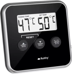 Das große, leicht ablesbare LCD-Display zeigt die aktuelle und die Zieltemperatur an. Mit einer einzigen Taste schalten Sie zwischen °C und °F um und stellen den Timer ein.