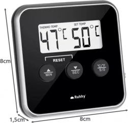 Braten Sie saftiges Fleisch, temperieren Sie Schokolade oder überwachen Sie den Kaffeebrühvorgang mit der Sicherheit der richtigen Temperatur. Das digitale Thermometer RUHHY mit Edelstahlsonde misst zuverlässig im Bereich von −20 bis 250 °C mit einer Auflösung von 1 °C. Das große LCD-Display ist hervorragend ablesbar und ermöglicht das schnelle Einstellen der Zieltemperatur sowie das Umschalten zwischen °C und °F.
