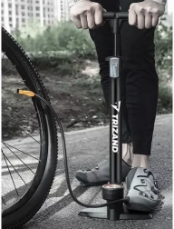Die zuverlässige Standpumpe TRIZAND kombiniert eine solide Metallkonstruktion mit präziser Druckmessung dank analogem Manometer. Mit dem langen Schlauch und Schnellverschluss-Arretierung erreichen Sie Ventile bequem und dichten sie sicher ab, ohne Luftverlust. Der maximale Druck von 16 bar / 230 PSI eignet sich für Rennradreifen ebenso wie für weiteres Sport- und Freizeit-Equipment.