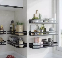 Verwenden Sie es im Badezimmer für Kosmetik und Toilettenpapier, in der Küche für Gewürzgläser und Vorratsdosen oder im Arbeitszimmer und Flur für Kleinigkeiten. Die Montage ist einfach – im Lieferumfang ist auch ein Montageset enthalten.