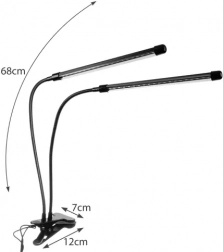 Diese praktische zweiköpfige Grow-Lampe mit 40 LEDs kombiniert rotes (630 nm) und blaues (470 nm) Spektrum, das Photosynthese, Bewurzelung, Wachstum und Blüte unterstützt. Dank der flexiblen Schwanenhälse richten Sie das Licht genau dorthin, wo es die Pflanzen brauchen, und befestigen die Lampe mit der Klemme an Regal oder Tisch.