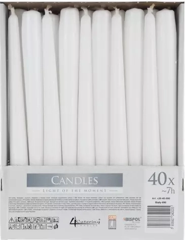 Die Kerzen sind aus einer hochwertigen Paraffinmischung gefertigt, die eine stabile Flamme und eine Brenndauer von bis zu 7 Stunden gewährleistet. Ideal für Hochzeiten, Taufen, Bankette, kirchliche Zeremonien sowie für den Hausgebrauch – und mit der praktischen Verpackung von 40 Stück gestalten Sie im Handumdrehen eine einheitliche Dekoration.