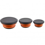 Das Set umfasst Schalen mit 0,4 l, 0,85 l und 1,65 l Volumen und erfüllt damit verschiedene Anforderungen an die Lebensmittelaufbewahrung. Die faltbare Konstruktion ermöglicht eine platzsparende Aufbewahrung.