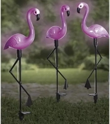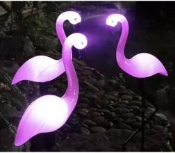 Erhellen Sie Ihren Außenbereich mit außergewöhnlichen solaren Lichtern in Flamingo-Form. Dieses Set aus drei Stück enthält ein Solarpanel, das energieeffiziente und automatische Beleuchtung ermöglicht. Jedes Licht ist mit zwei LEDs ausgestattet, die den umliegenden Bereich elegant beleuchten.<>
