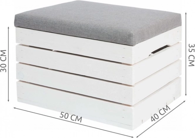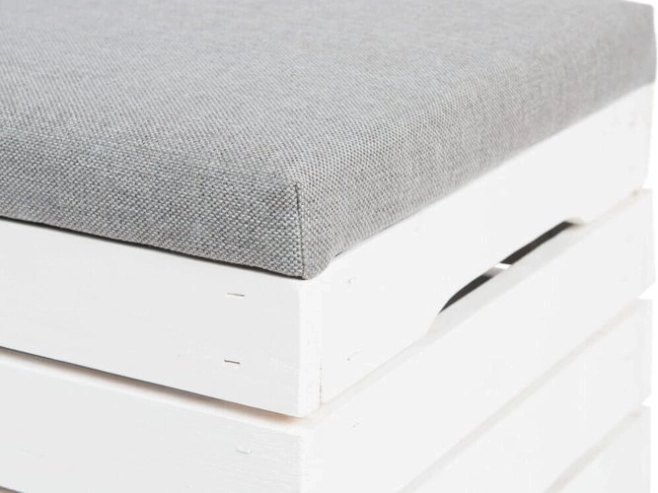 Die robuste Ausführung aus getrocknetem und gehobeltem Fichtenholz mit breiten Lamellen (bis zu 13 cm) gewährleistet Stabilität und Langlebigkeit. Der hoch elastische T-25-Schaum bietet bequemes Sitzen – ob als Bank im Flur, Fußhocker am Sofa oder praktischer Ablagetisch auf dem Balkon.