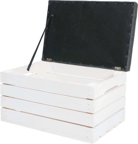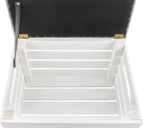 Der klappbare Deckel an Scharnieren mit Halteband ermöglicht schnellen Zugriff auf den großen Stauraum für Decken, Schuhe oder Spielzeug und hält Ihr Zuhause ordentlich.