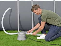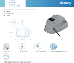 Die Installation ist einfach – schließen Sie den Heizer einfach an das Filtersystem Ihres Pools an. Das Gerät ist für Aufstellpools mit einem Volumen von 1.520–17.035 l und eine Pumpenförderleistung bis 3.785 l/h ausgelegt. Die maximale Temperatur beträgt 40 °C (erreichbar abhängig von der Eingangswassertemperatur und der Umgebung). Die robuste Konstruktion und das lange Netzkabel von 3,5 m erleichtern Aufstellung und Betrieb.