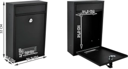 Im Lieferumfang enthalten ist komplettes Montagezubehör für die schnelle Befestigung an Wand oder Zaun. Lüftungsöffnungen unterstützen die Feuchtigkeitsableitung und sichern die lange Lebensdauer des Briefkastens. Die kompakten Maße eignen sich für Einfamilienhäuser, Mehrfamilienhäuser und kleinere Büros.