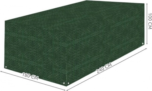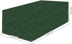Die Abdeckung für Gartenmöbel bietet perfekten Schutz vor Witterungseinflüssen. Sie besteht aus widerstandsfähigem Polyethylen mit einer Grammatur von 100g/m2, was eine lange Lebensdauer gewährleistet. Geeignet für Möbel wie einen Tisch und bis zu 6 Stühle oder andere Gartenausstattung wie eine Schaukel, Bank oder Grill.