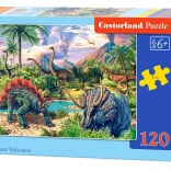 Entdecken Sie ein unterhaltsames und lehrreiches Puzzle mit dem Motiv Dinosaur Volcanos. Dank der 120 Teile und der kräftigen Farben trainieren Kinder logisches Denken, Form- und Farberkennung und lernen Geduld und Konzentration. Nach dem Zusammensetzen entsteht ein hochwertiges Bild im Format 32 × 23 cm, das jeden Dinosaurierfan erfreut.