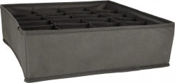 Bringen Sie ein für alle Mal Ordnung in Ihre Schublade. Dieser Textil-Organizer mit 24 Fächern sortiert übersichtlich Socken, Unterwäsche, Krawatten und Accessoires. Er hat verstärkte Wände, besteht aus atmungsaktivem Stoff, ist leicht zu reinigen und dank der faltbaren Konstruktion platzsparend, wenn Sie ihn gerade nicht benötigen.